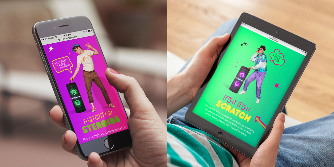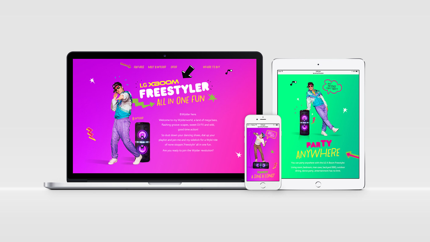 A revolution in audio, LG’s new ‘Freestyler’ boom box boasts 600 watts of untethered power, a dazzling range of lighting and DJ effects and even a karaoke feature. In other words, it’s an all in one party machine. Our challenge was to reach out to 20-30 year old male party goers of Australia and get them to view the Freestyler as the must-have sound system for their next party, backyard BBQ or garage rave. With only a modest budget, we wanted to create a campaign that would be as fun, loud and as impossible to miss as the Freestyler itself.