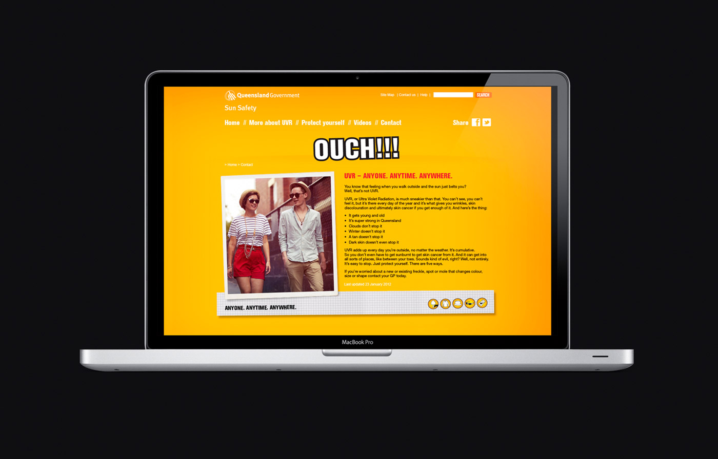 How do you convince a bunch of 17-25 year olds to protect themselves from the sun? It's a long running problem and a difficult group to talk to. So, instead of using scare tactics we chose to go the opposite way, make them laugh and while doing so, underline it with a genuine message about sun safety in Queensland.